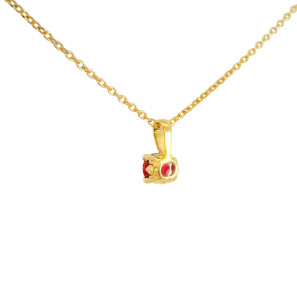 The .40 carat 4.25 mm Burmese ruby has a strong red color and has excellent clarity.
